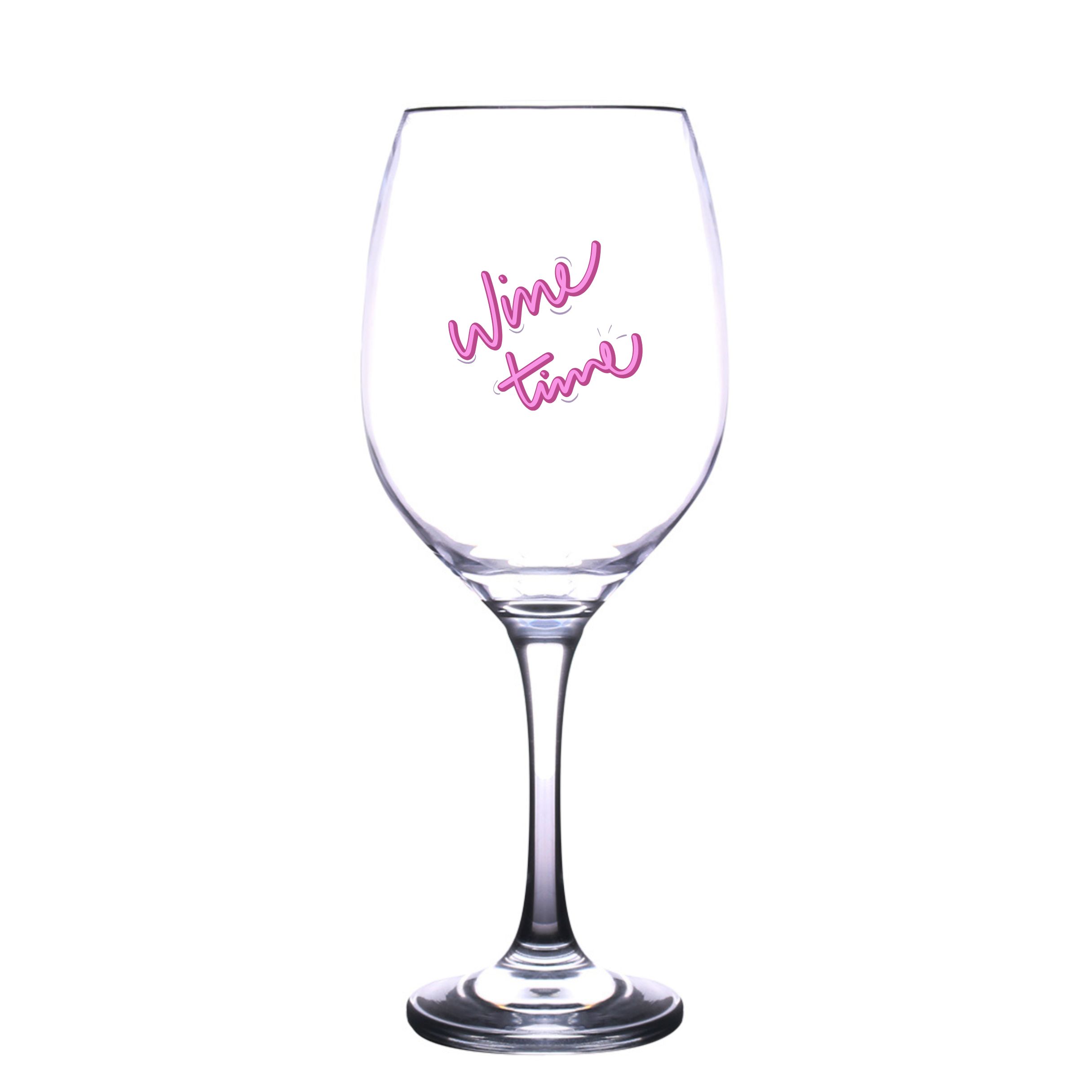Ein elegantes Weinglas, dessen Dekoration die einzigartige Botschaft der Marke perfekt ergänzt.
